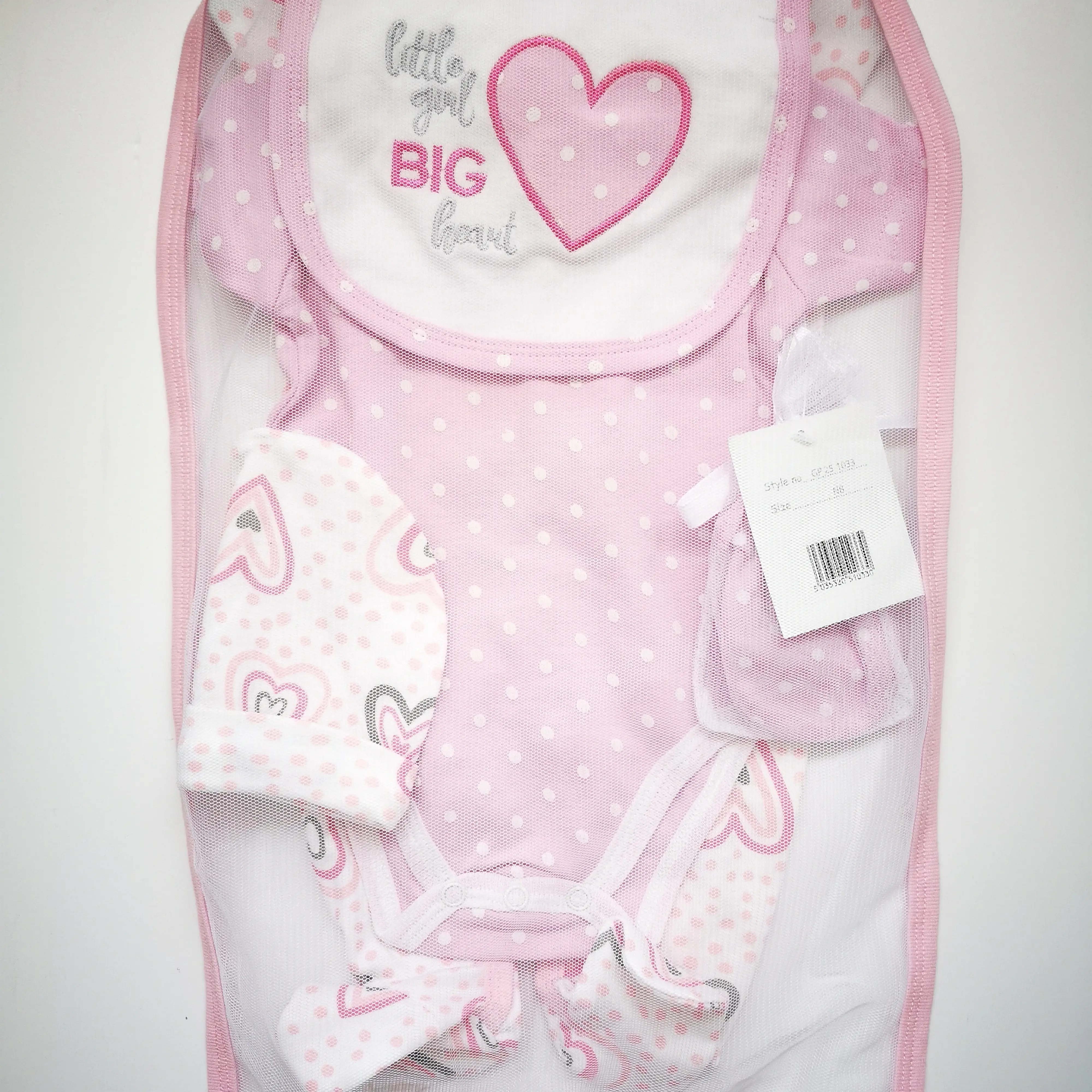 Baby 5pcs gift set in a mesh bag "Little Girl, Big Heart"