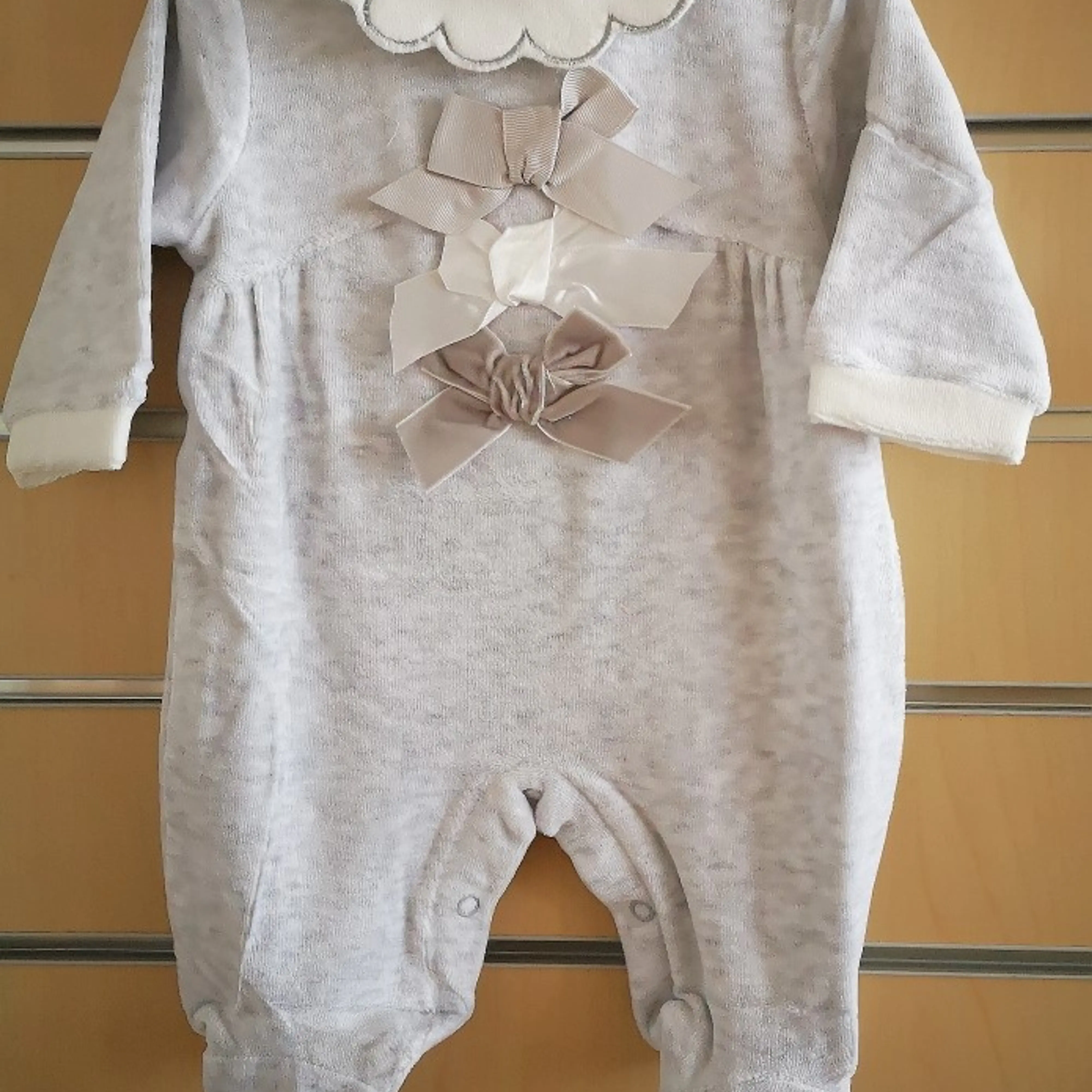 Grey Velour Babygrow with 3 Ribbons 9337 (6pcs)