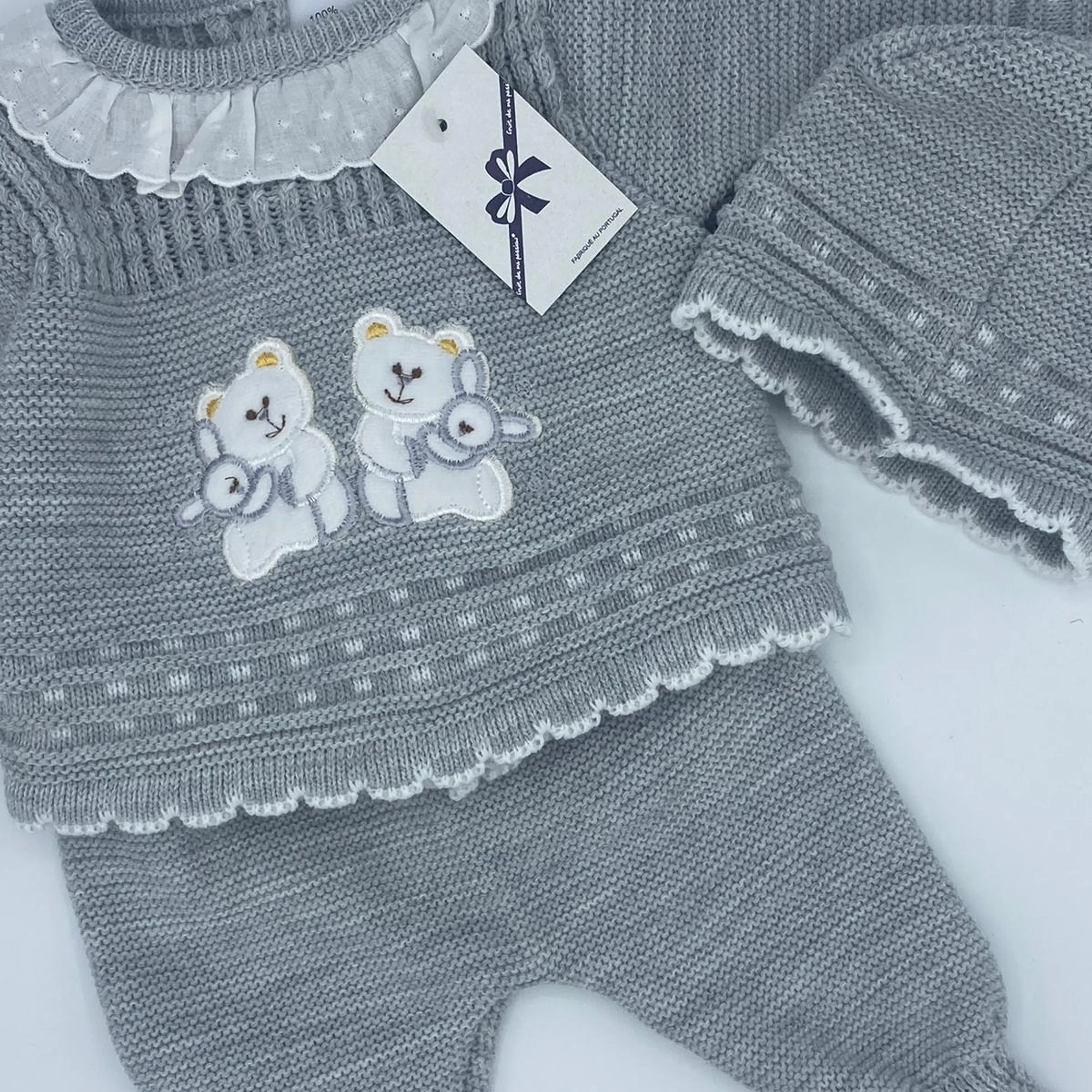 This style comes in a Gift Box and includes a knitted legging / jumper & hat