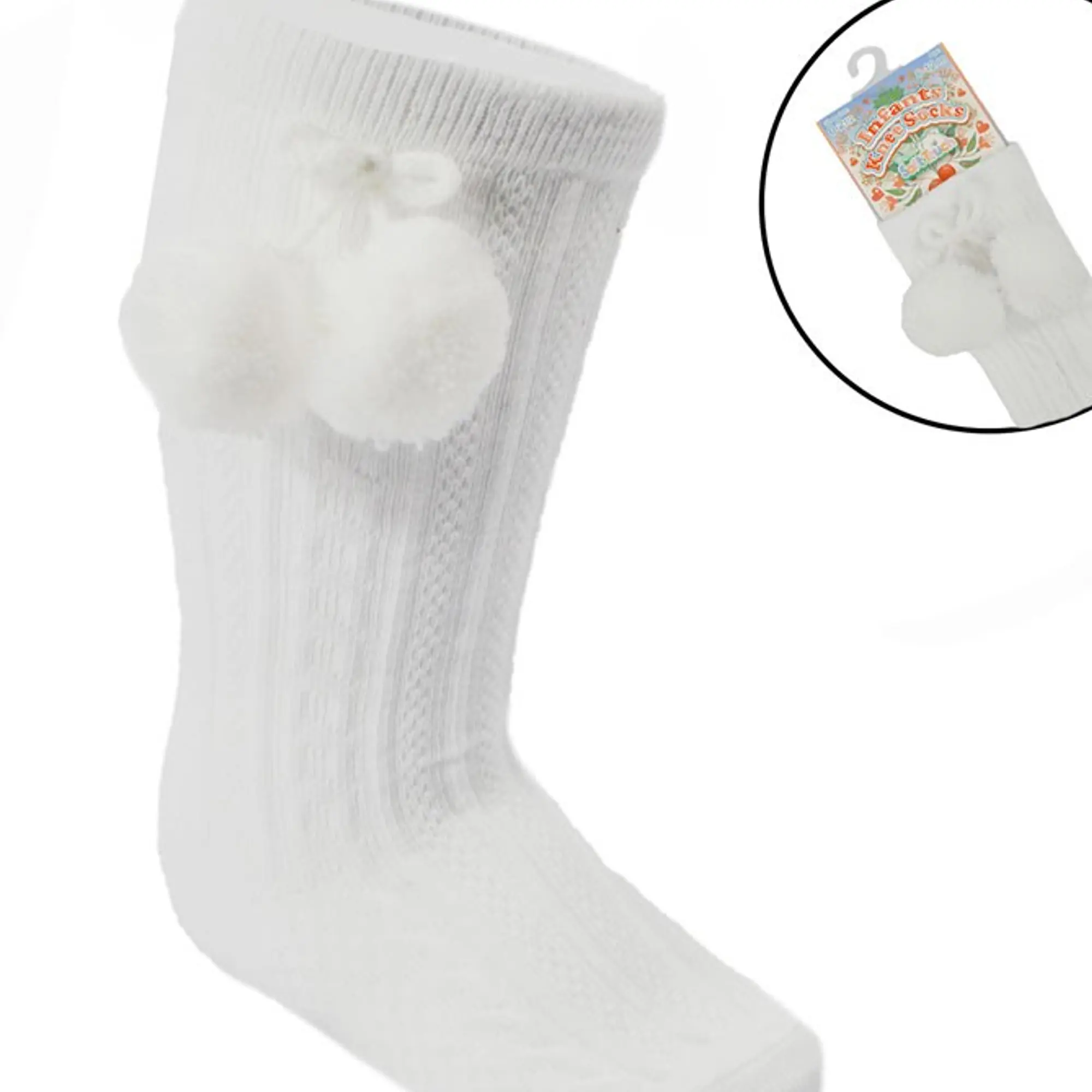 White Pom Pom Knee High Socks 0-24 months (dz)